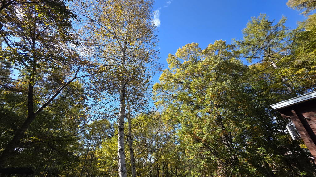 昨日の雨のせいか、我が家の敷地内の黄葉も一気に進み、八ヶ岳ブルーの空とのコントラストが美しい。