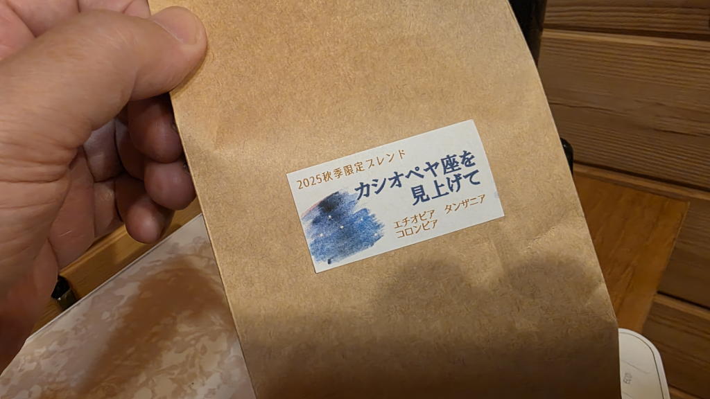 珈琲豆は「カシオペヤ座を見上げて」の封を切って、水は「大滝湧水」の名水(名水百選だもんね!)、そして珈琲マスターのお任せで淹れる。