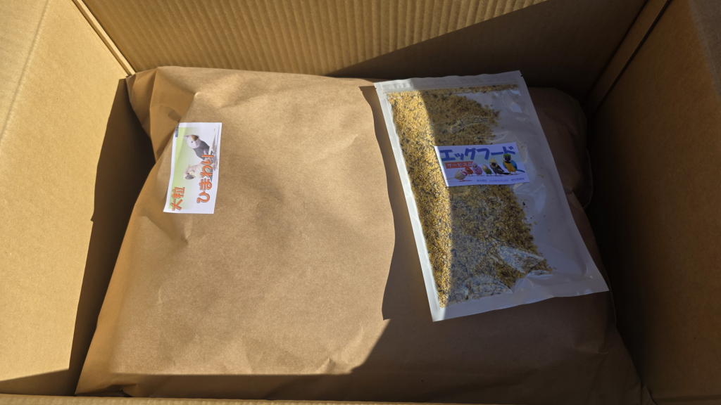 それに、箱を開けたら、サービス品として「エッグフード」が1袋入っていた。