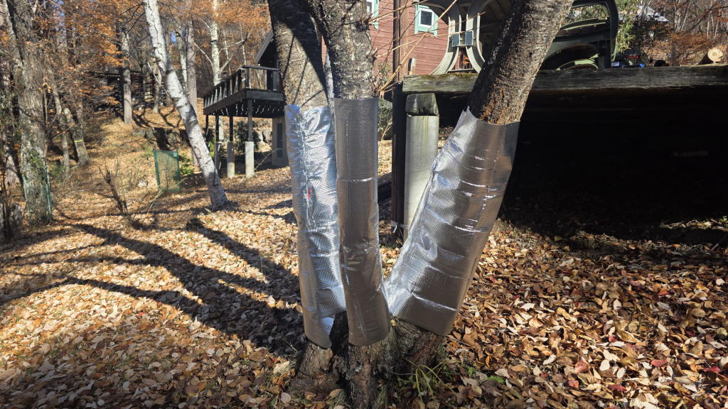社主さまメインの鹿除け銀マット巻き作業を手伝ったり、ガーデンファニチャーをオフィス地下室に収納したりと、動き回った。
