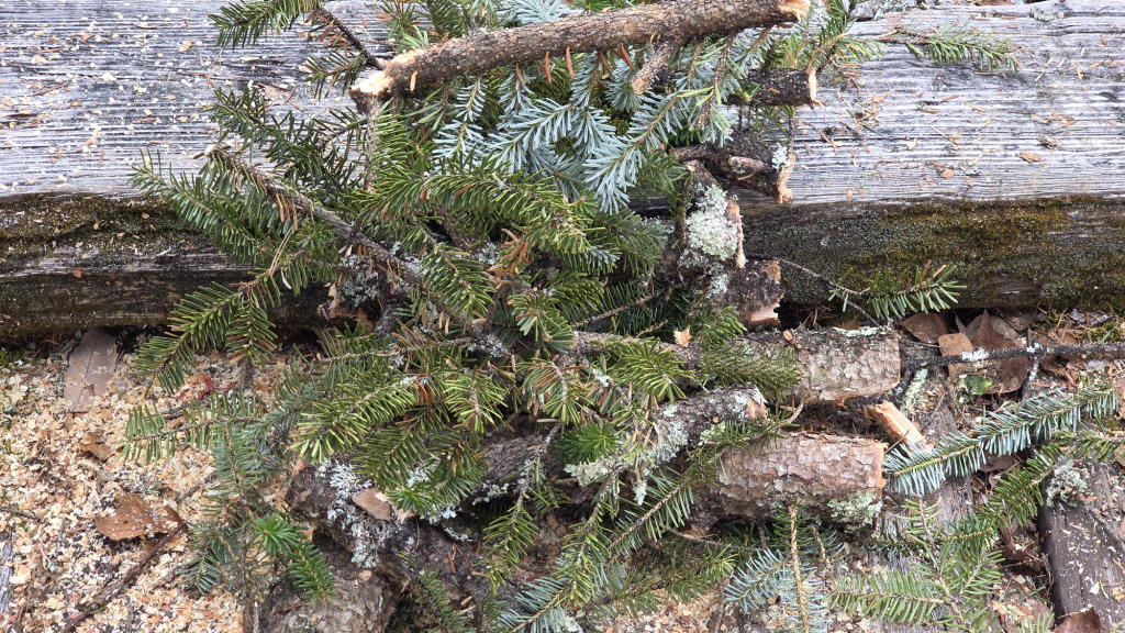 枝切り鋏や彼女用の小型の電動チェンソーを器用に使い、どんどんリースやスワッグ用に切り分けていった。