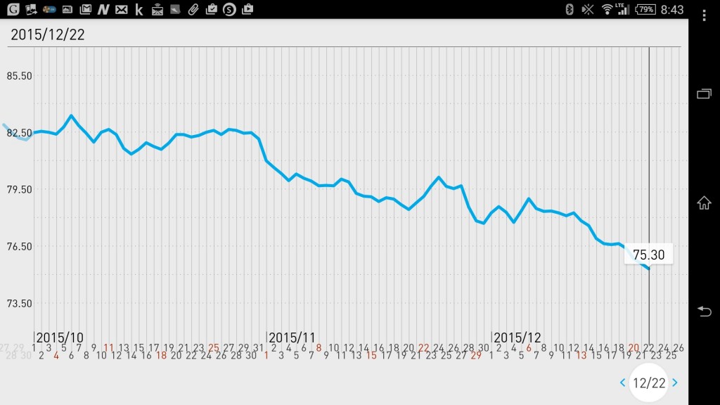 今朝、いつものように体組成計に乗ると、体重は 75.30 kgと表示された。8月1日の朝、90kgちょうどからスタートした「トリグラフ流ダイエット」は、当初目標時期であった来年2月末よりも、かなり早くに、ゴールに到達でき …